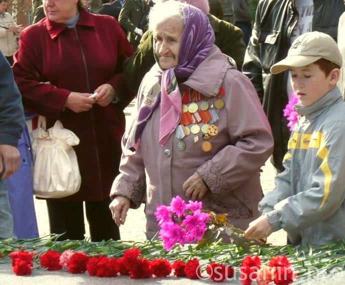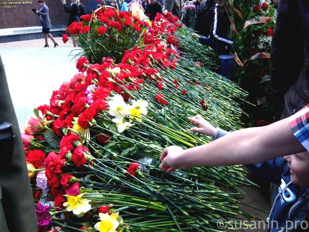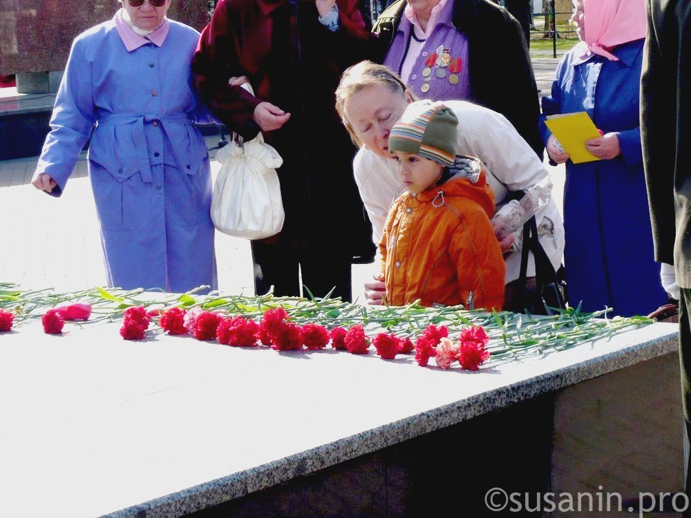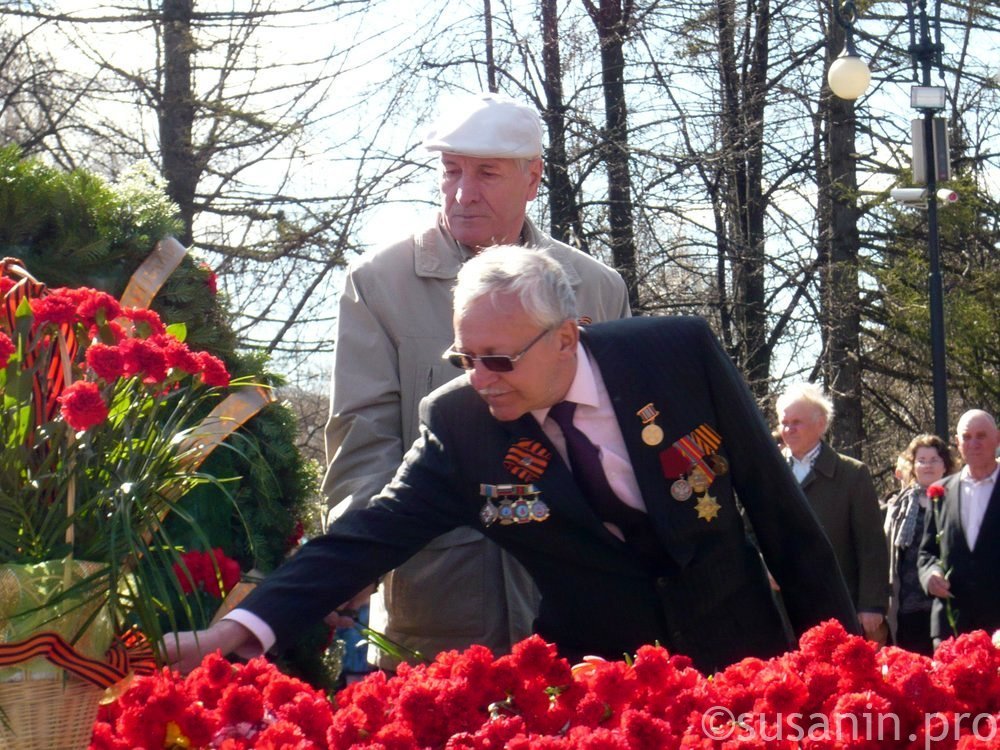 Горожане собрались на площади у Вечного огня в День Победы, что бы почтить память погибших на войне.