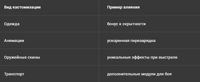 Игроки смогут приобретать уникальные скины для оружия, транспорта и персонажей. Система напоминает монетизацию в Дота 2, где косметика не влияет на игровой баланс, но активно используется для персонализации.
