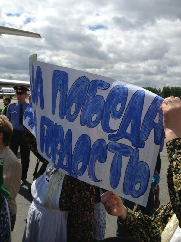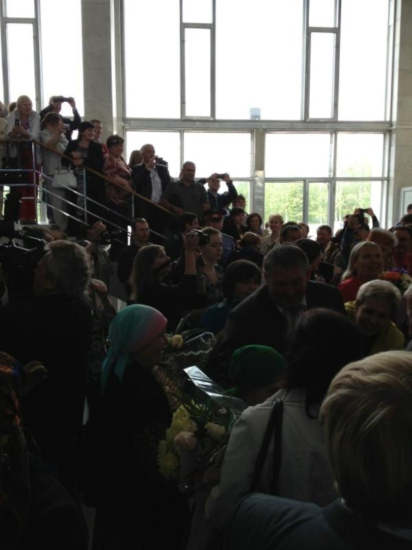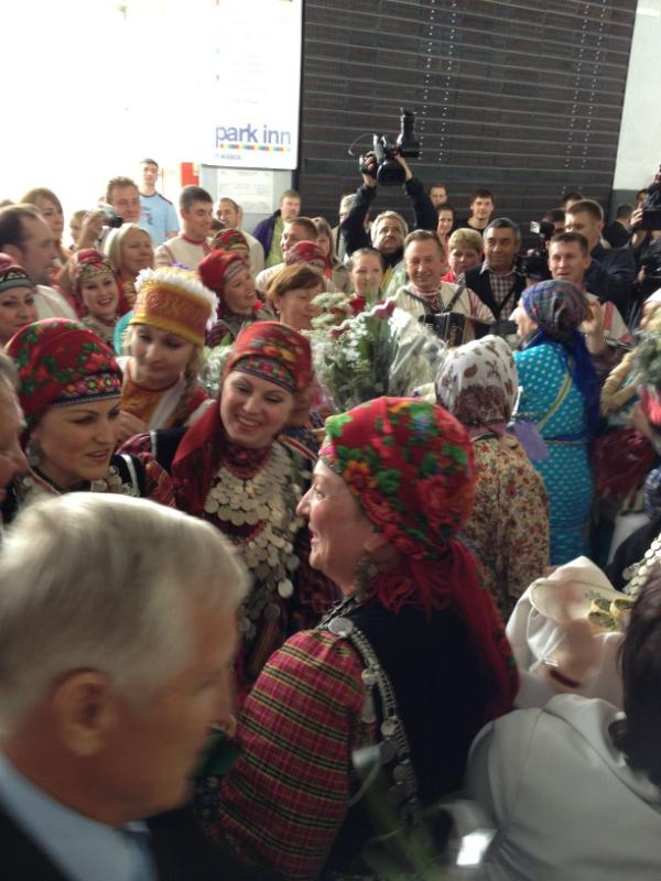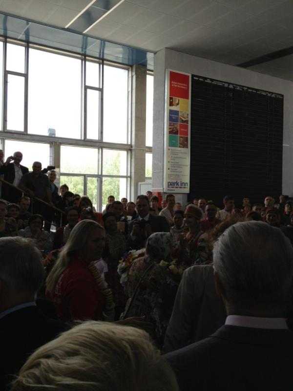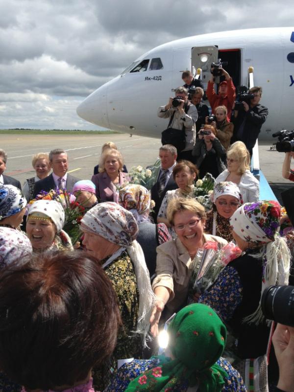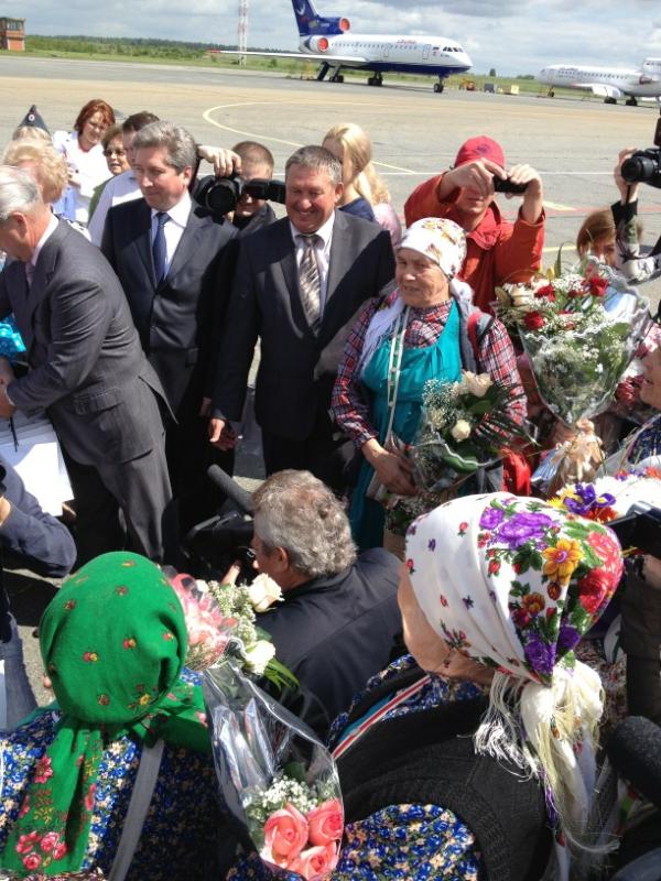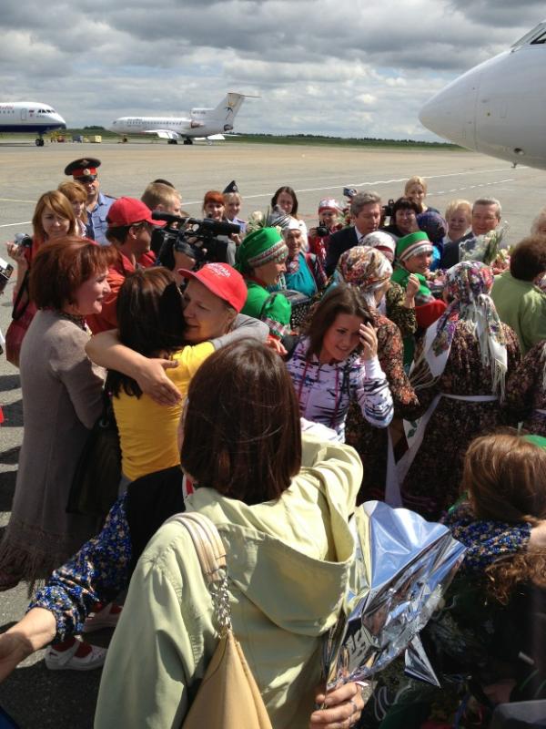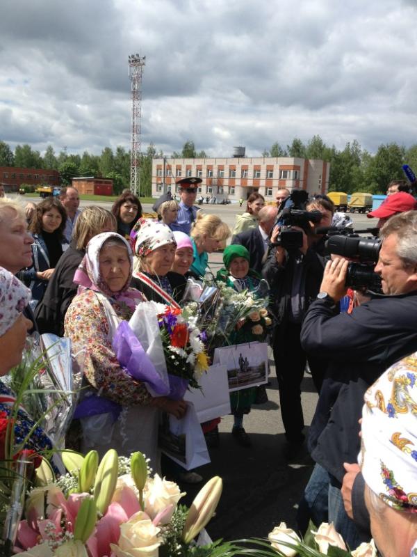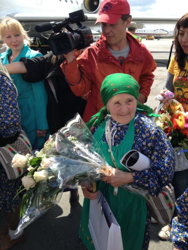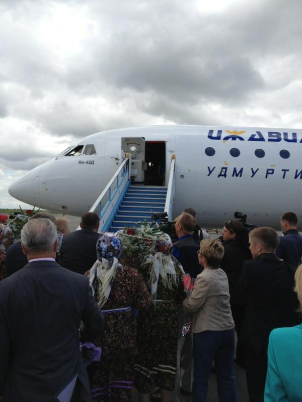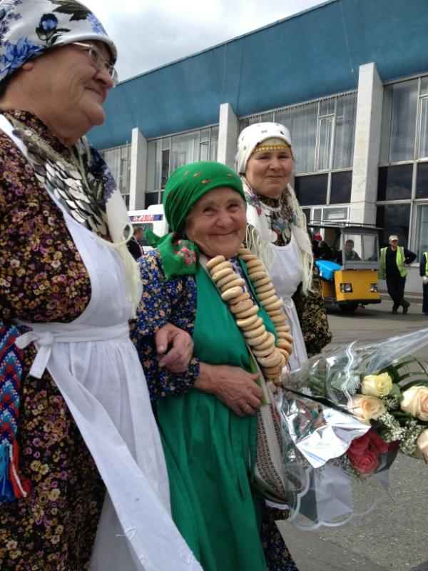 Ижевск. Удмуртия. Вернувшихся с «Евровидения» «Бурановских бабушек» встретили в Ижевске. Сегодня, 29 мая, самолет с обладательницами «серебра» конкурса приземлился в аэропорту. На взлетно-посадочной полосе, спускающихся по трапу пожилых певиц встретила вице-премьер Правительства Удмуртской Республики Людмила Чунаева, министр культуры Дмитрий Иванов, глава Ижевска Александр Ушаков, глава Малопургинского района Александр Ерохин представители средств массовой информации, родные и близкие.