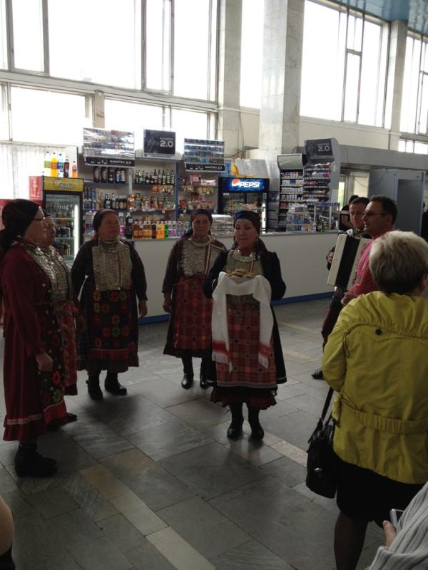 На родной земле «Бурановских бабушек» буквально завалили цветами, а в помещении аэровокзала их ждали перепечи и музыка. Зал ожидания был забит до отказа. Желающие встретить старушек, покоривших весь мир, скандировали поздравления, и стремились сфотографироваться с певицами.