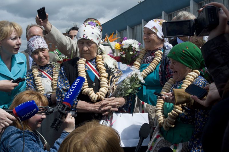 Ижевск. Удмуртия. «Бурановские бабушки» отправили в родное село со слезами на глазах. Растрогал певуний горячий прием, оказанный им поклонниками, родными и земляками.