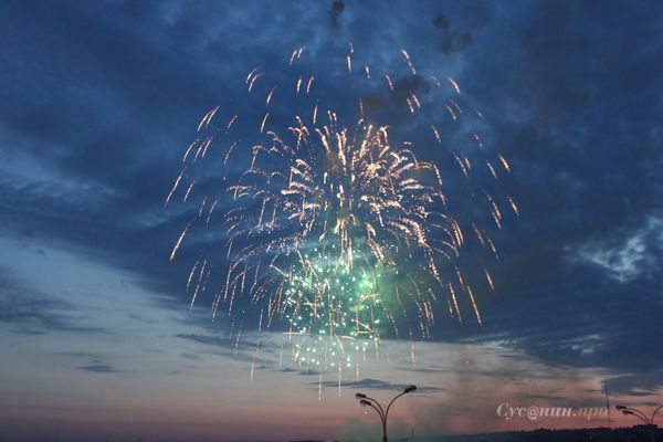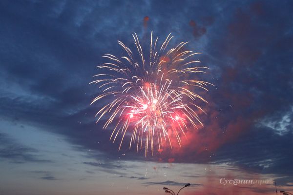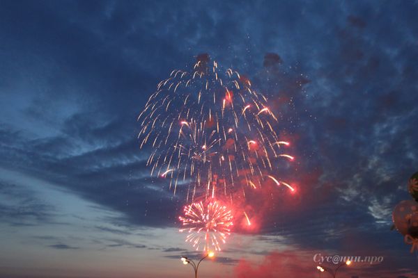 Салют, как и ожидалось, начался ровно в 22:15, когда на горизонте уже догорал закат. С барж в центре прибрежной части пруда ввысь рванули заряды, из которых посыпались красные, желтые и зеленые искры. Экспериментировать с формами организаторы не стали. Горожане и гости столицы Удмуртской Республики увидели привычные шары, звезды и водопады, а однажды в небе появилось сердечко. Тем не менее, салют произвел на зрителей самое приятное впечатление. Последний залп ижевчане сопроводили аплодисментами и восторженными криками.