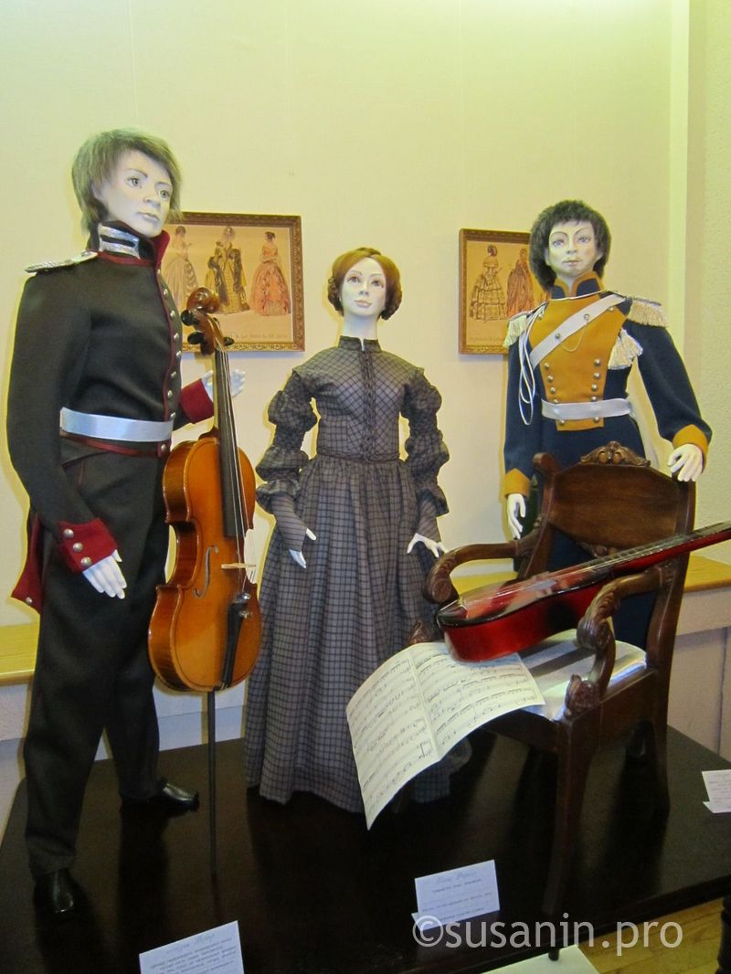 Авторы воссоздали в одном из залов выставочного центра «Галерея» атмосферу, царившую в доме великого композитора во время светских приемов. «А маленького Петю не пускали на такие вечера», - говорят художницы. Именно поэтому среди кукол нет самого композитора. Зато здесь представлены члены семьи и близкие люди Петра Чайковского.