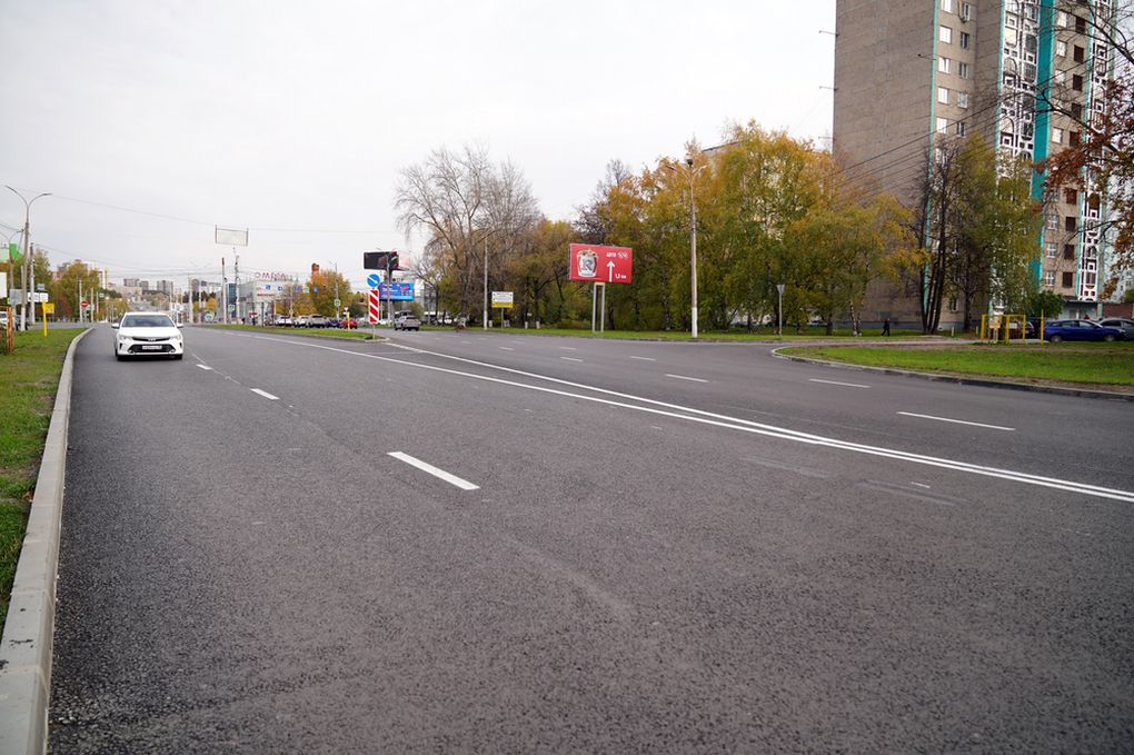 На автодороге, где всегда высокий трафик, уложили два слоя асфальтобетона, установили новые бордюрные камни, отремонтировали колодцы ливневой канализации и нанесли дорожную разметку.