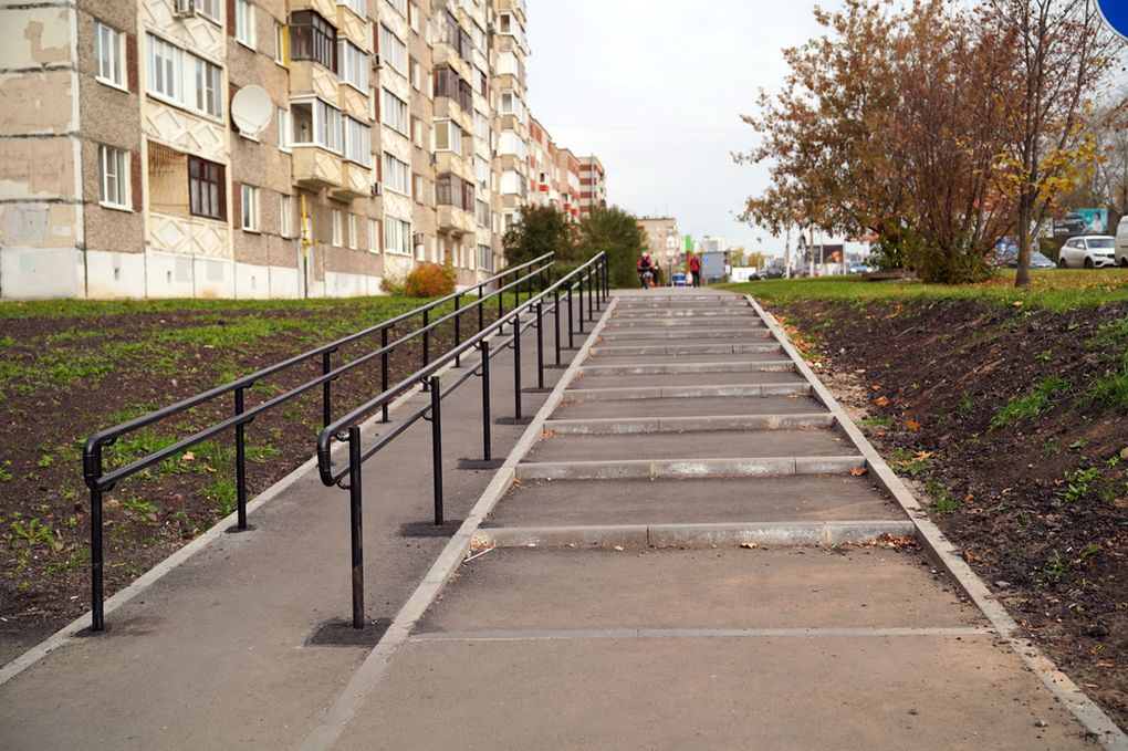 Отметим, что в этом году на всех ремонтных объектах применяется комплексный подход: обновляется не только асфальтовое покрытие дорог, но и прилегающие к ним тротуары и проезды. На ул. 10 лет Октября также новый асфальт появился в шлюзовом проезде. По программе «Пешеходный Ижевск» отремонтирован тротуар рядом с домом №19 — здесь появилась новая лестница и оборудован пандус с перилами. Новая посадочная площадка, лестничный сход и пандус оборудованы также на остановке общественного транспорта в сторону ул. Пушкинской.