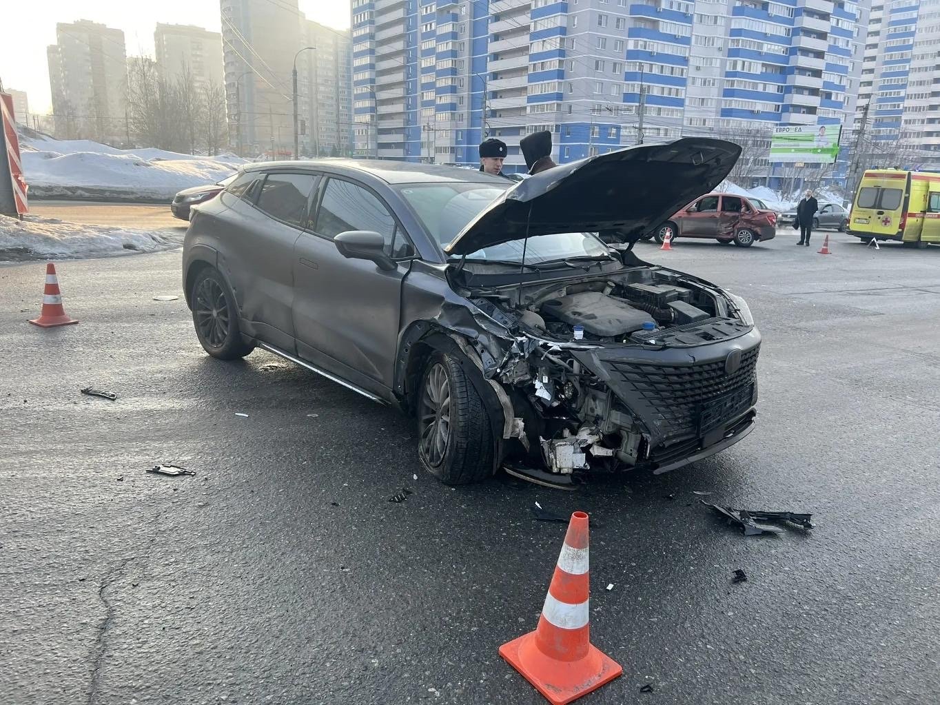 Сообщений о пострадавших пока нет, но на фото зафиксировано присутствие кареты скорой помощи.