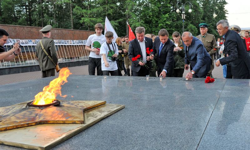 Александр Соловьев обратился к участникам мероприятия. «День 22 июня 1941 года всё изменил. Изменил жизнь людей, их судьбы. Война прошла косой по нашей земле. И для 27 миллионов наших соотечественников послевоенной жизни уже не было. Они пали жертвами самой страшной войны.