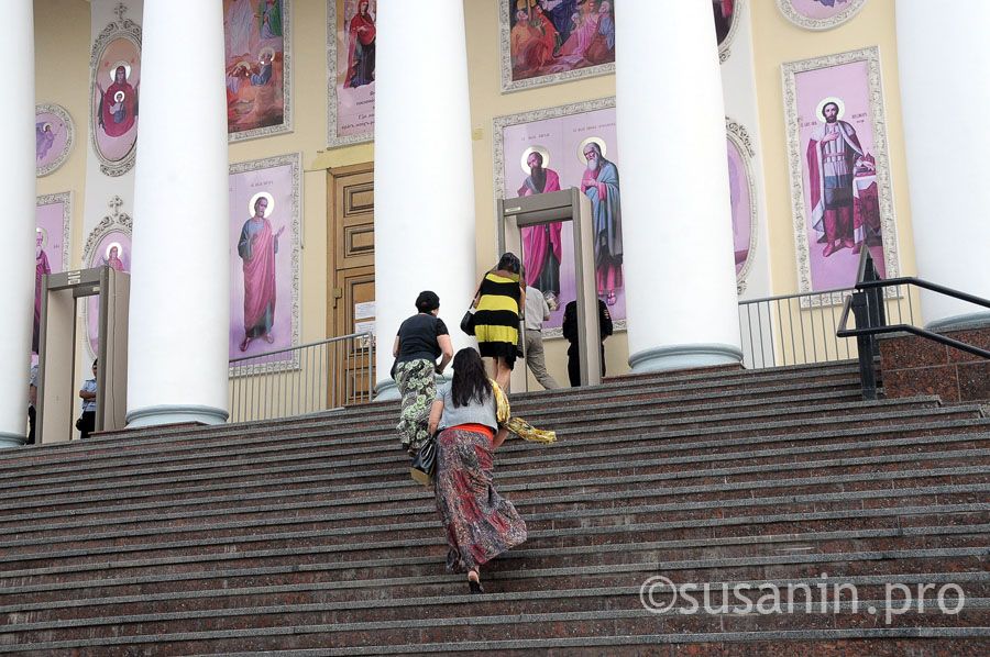 Ижевск. Удмуртия. Ижевск прощается с почившим митрополитом Николаем. Гроб с телом бывшего главы удмуртской митрополии установили в соборе Александра Невского. Желающие отдать дань уважения священнослужителю проходят через рамки металлоискателя на входе в храм.